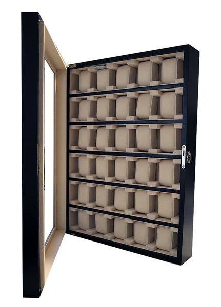 Uhrenvitrine Wand - Tischvitrine für 36 Uhren Farbe Braun No.7