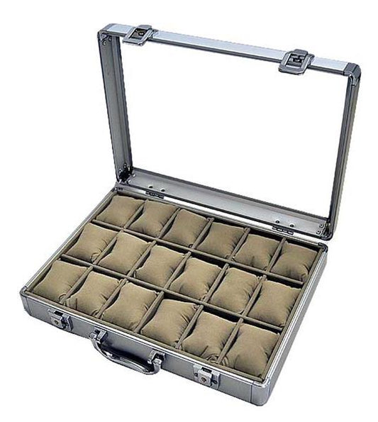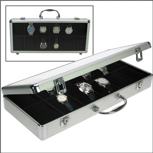 Alu Uhrenkoffer für 12 große Uhren Schaukasten Uhrenbox schwarz 4738 (11407)