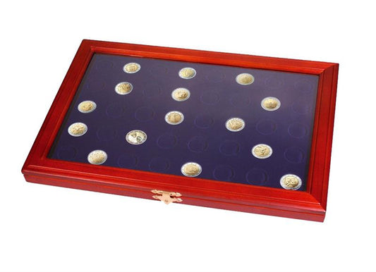 VITRINE mit 40 FÄCHERN für MÜNZEN Holzrahmen 5903 NEU 7235