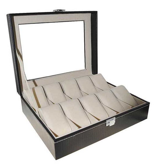 Uhrenbox Kunstleder für 10 Uhren Sammelbox Schaukasten schwarz 10458
