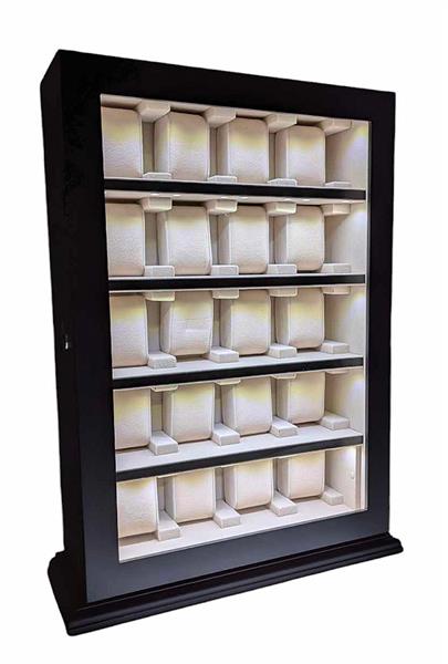 Uhrenaufbewahrungsvitrine für bis zu 20 Uhren.