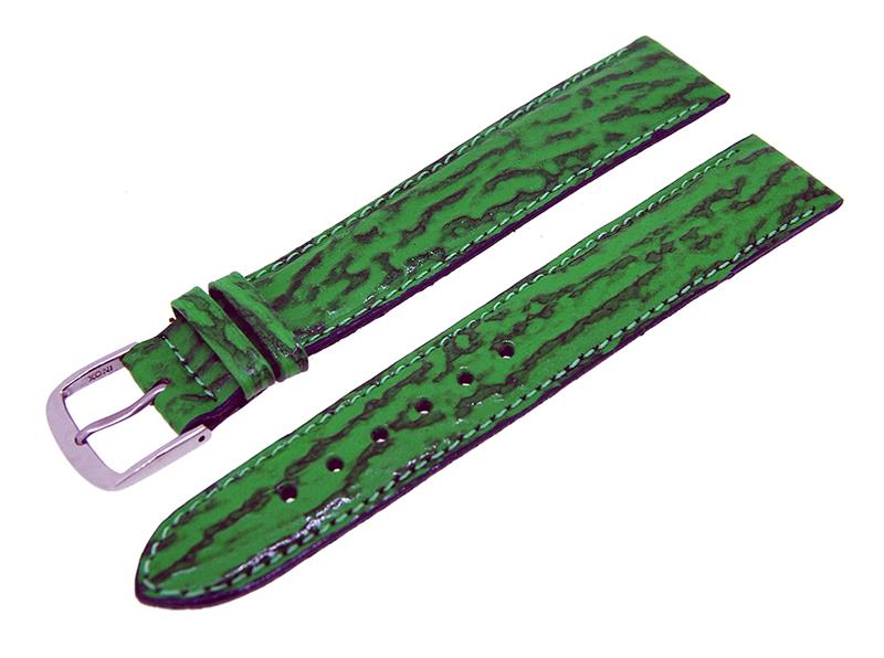 Uhrenarmband Lederband Grün Ton in Ton 18mm Dornschließe Silber XL NEU 14150