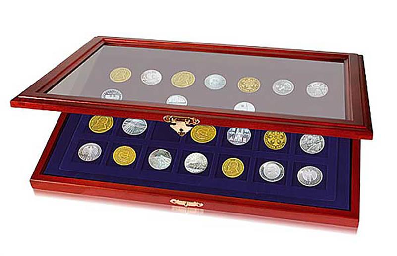 VITRINE mit 40 FÄCHERN für MÜNZEN Holzrahmen 5903 NEU 7235